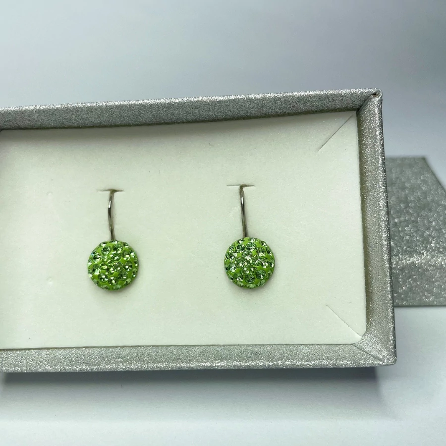 Francia kapcsos gyurmás fülbevaló fűzöld (peridot) színű Swanis kristállyal.