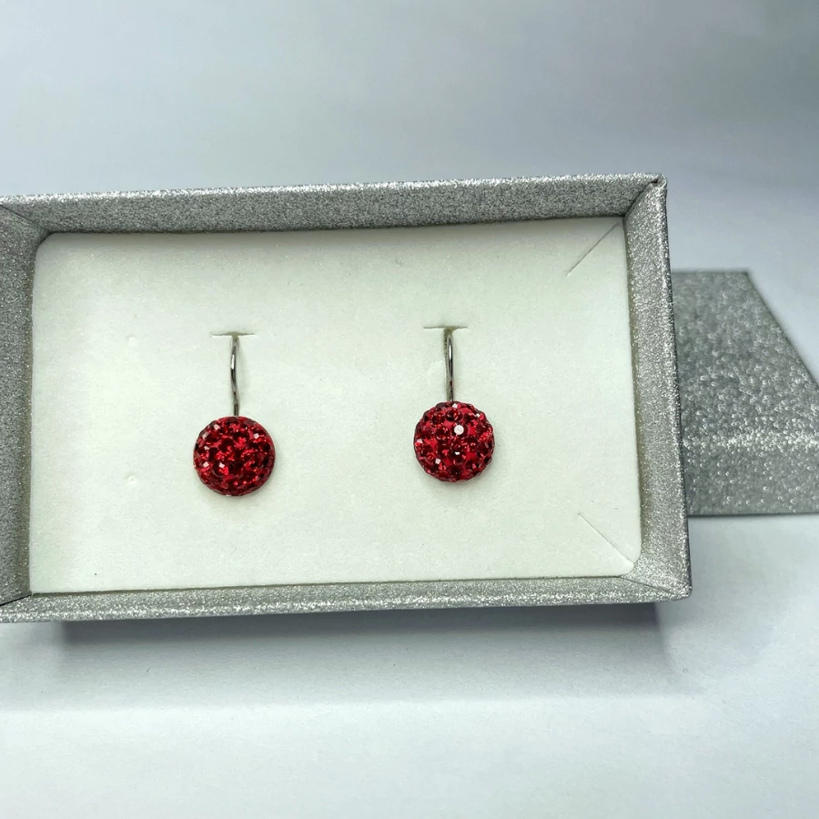 Francia kapcsos gyurmás fülbevaló piros színű Swanis kristállyal, 10 mm