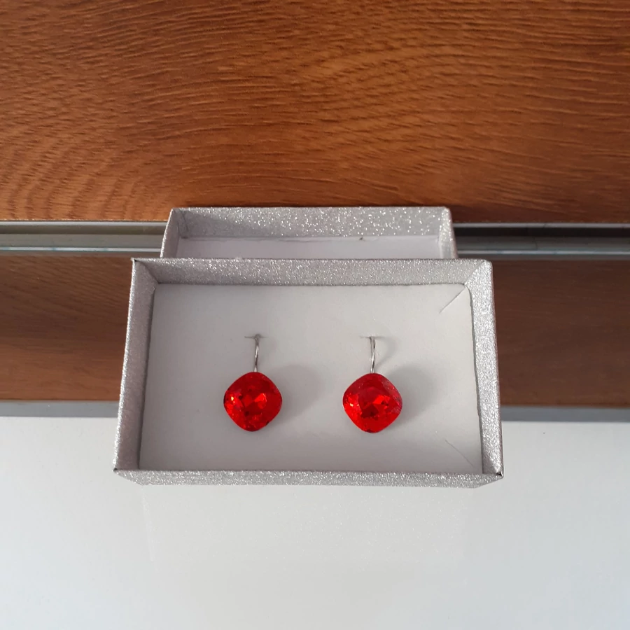 Francia kapcsos nagy párna fülbevaló piros színű Swanis kristállyal.
