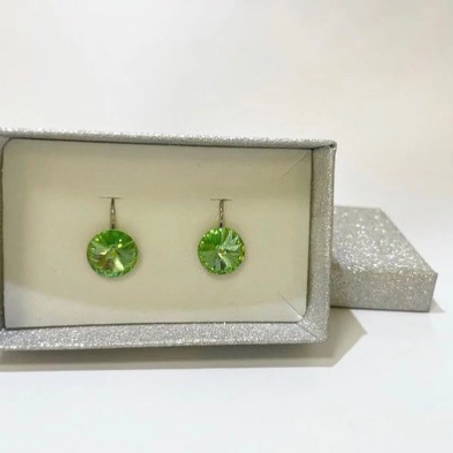 Francia kapcsos Rivoli fülbevaló fűzöld (peridot) színű Swanis kristállyal.
