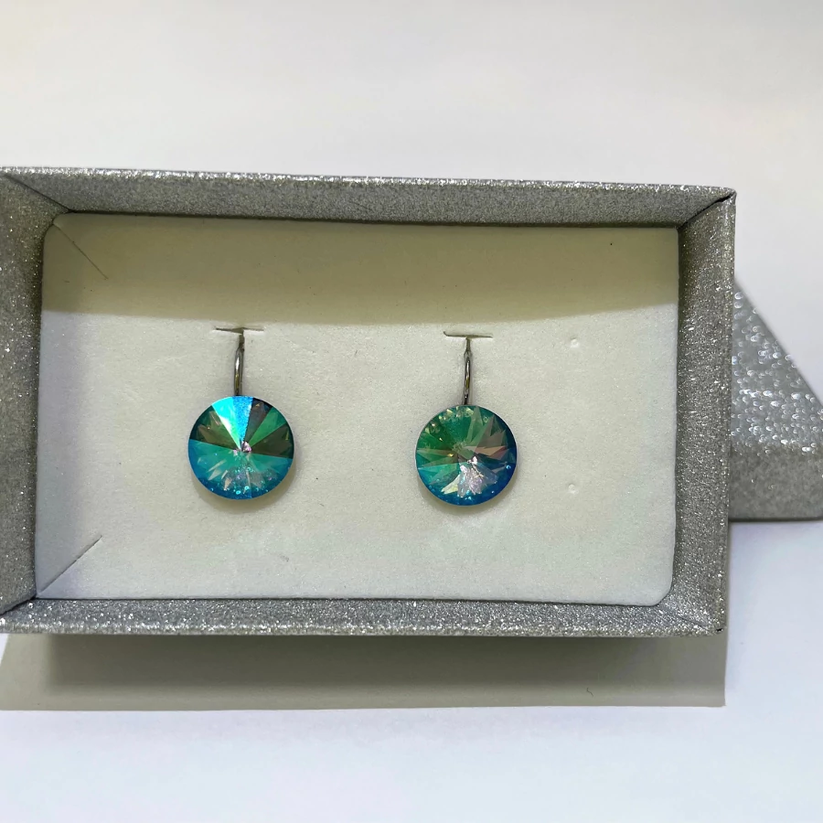 Francia kapcsos Rivoli fülbevaló szinjátszó lila színű Swanis kristállyal, 12 mm