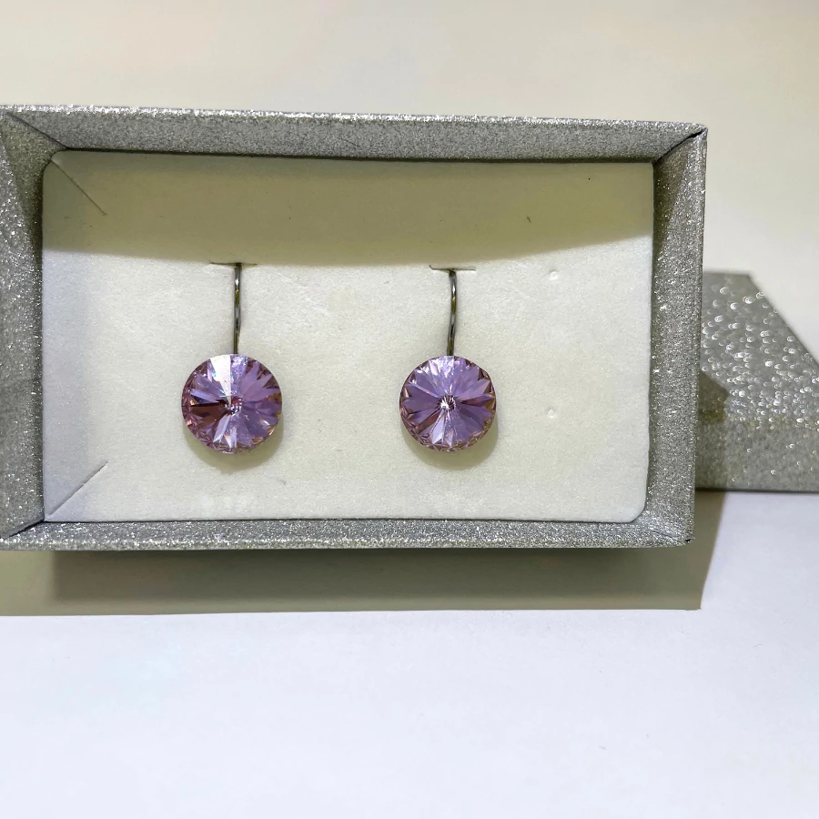 Francia kapcsos Rivoli fülbevaló világos lila (viola) színű Swanis kristállyal.