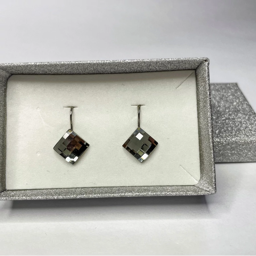Francia kapcsos sakktábla fülbevaló halvány grafit (graphite) színű Swanis kristállyal.