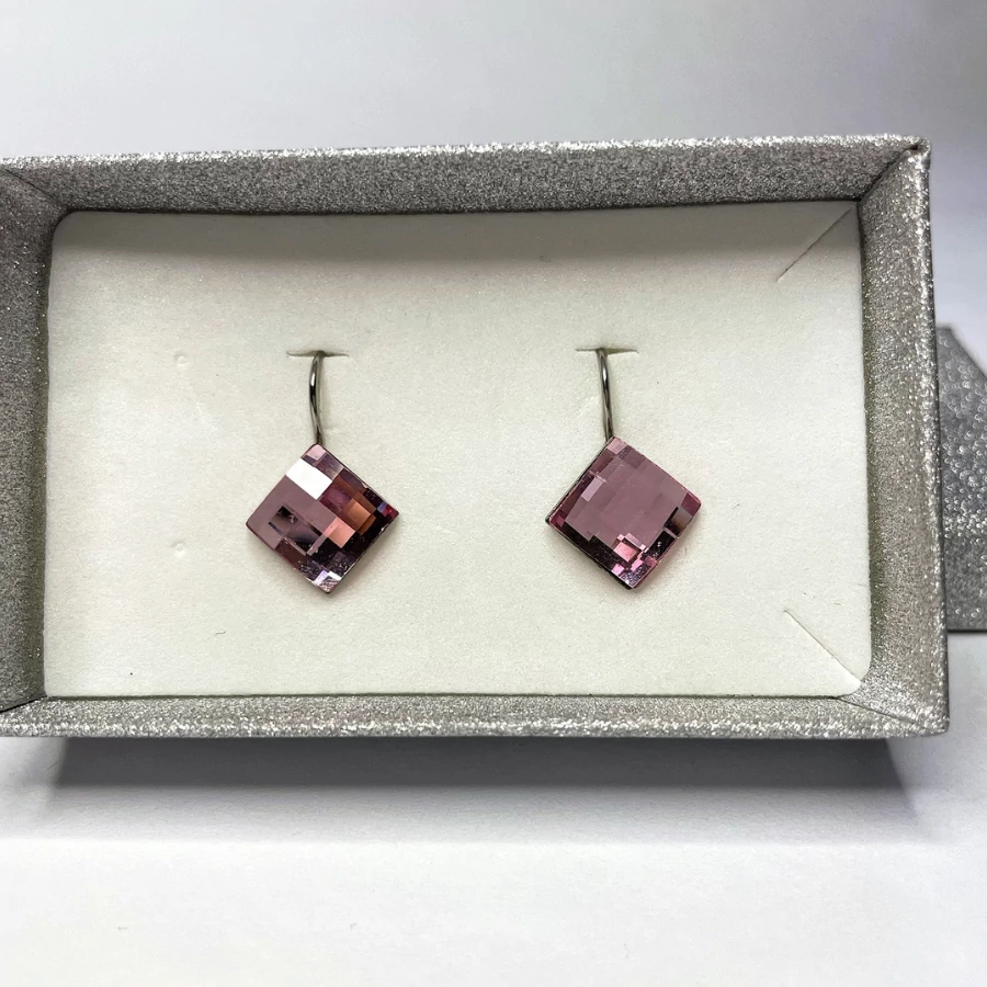 Francia kapcsos sakktábla fülbevaló halvány rózsaszín (light rose) színű Swanis kristállyal.