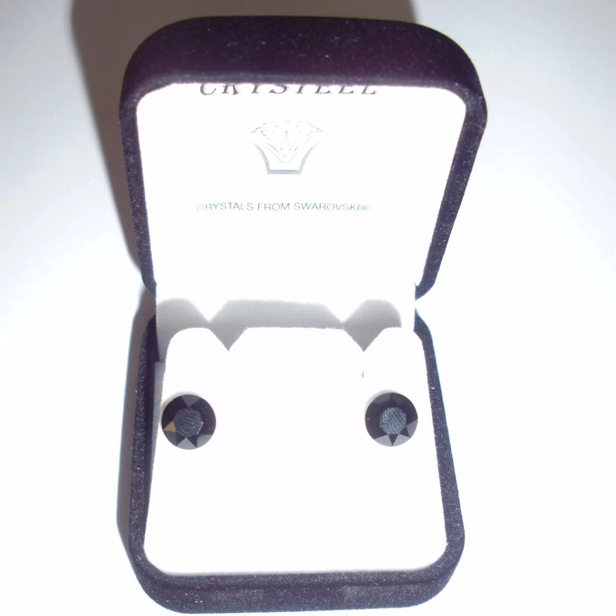 Nemesacél fülbevaló fekete (jet) színű Swanis kristállyal, beszúrós, 8,2 mm,