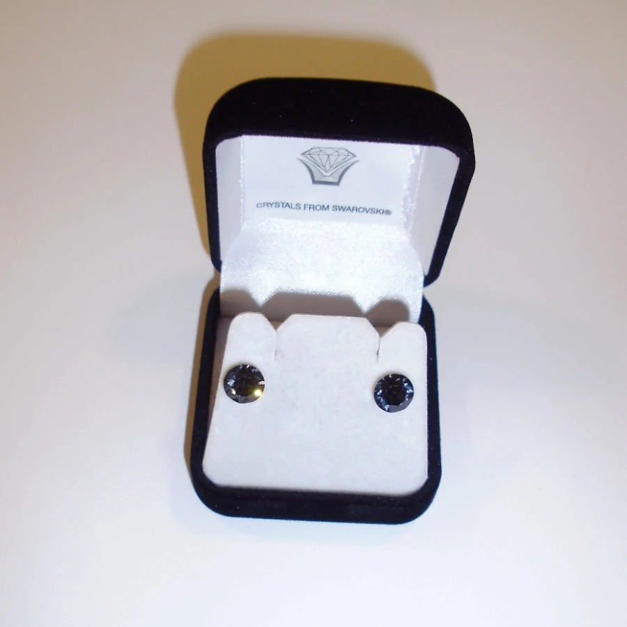 Nemesacél fülbevaló grafit (graphite) színű Swanis kristállyal, beszúrós, 8,2 mm,