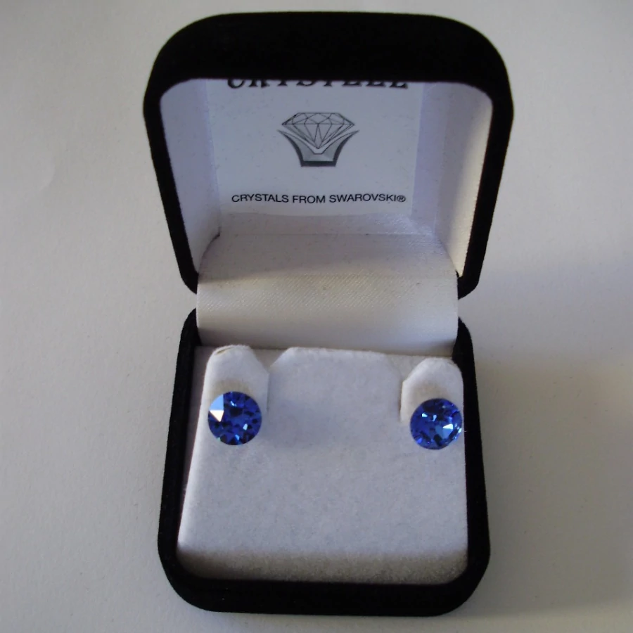 Nemesacél fülbevaló zafírkék (sapphire) színű Swanis kristállyal, beszúrós, 8,2 mm,